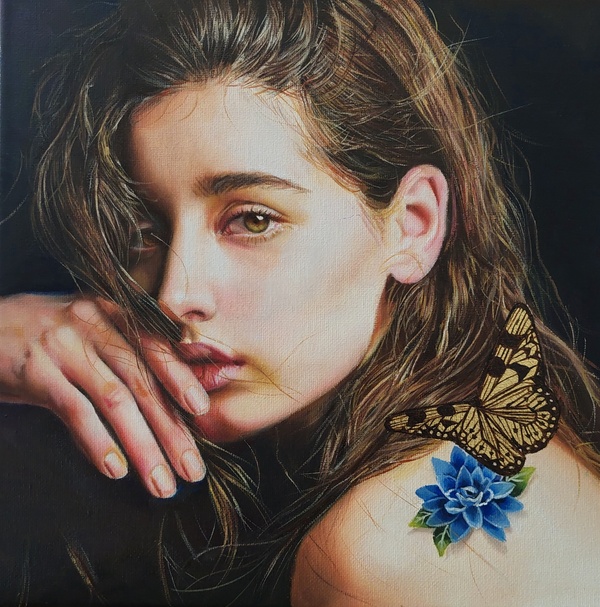 Initially hyper-realistic, she is now expressesing herself through a modern realism and prefers female portraits. She has always been particularly focused on the expressiveness of the gaze.